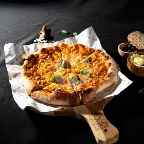Pizza dengan lapisan 3 jenis keju : Red cheddar, mozzarella, dan parmesan cheese yang meleleh berlimpah.