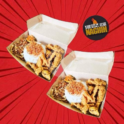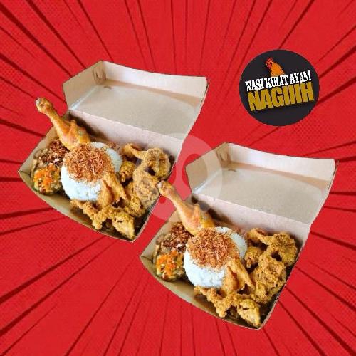 2 Paket ( Nasi + Kulit + Ayam Paha Bawah + Serundeng + Kol Goreng + Sambal)