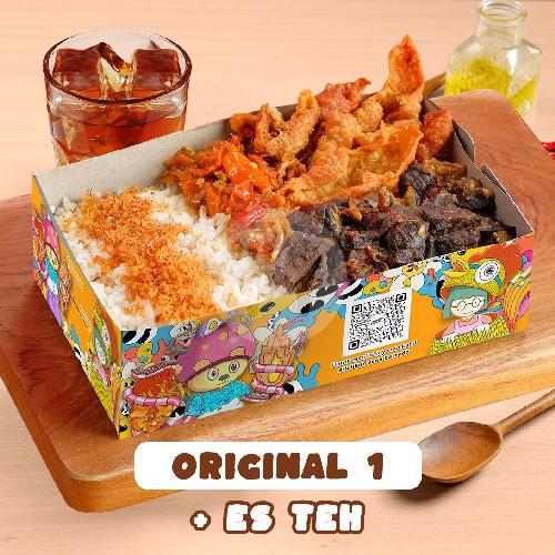Nasi Kulit dipadukan dengan Paru, Serundeng/Kremes serta Sambal + Es Teh