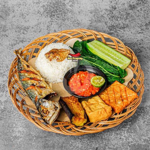 Nasi Hangat Disajikan Dengan Ikan Kembung Goreng,Terong,Bayam Rebus,Timun,Ikan Asin,Tahu Tempe, Sambal Tempong