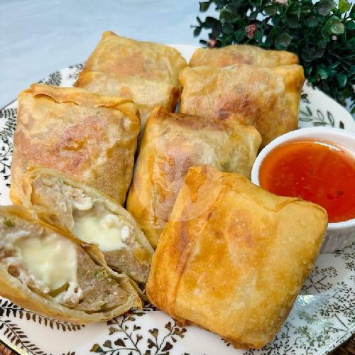 Dimsum Goreng Dengan Isian Keju Yang Lumer Di Dalamnya Disajikan Bersama Dengan Saos