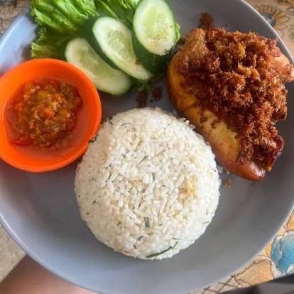 Nasi daun jeruk+ayam goreng lengkuas+lalapan
