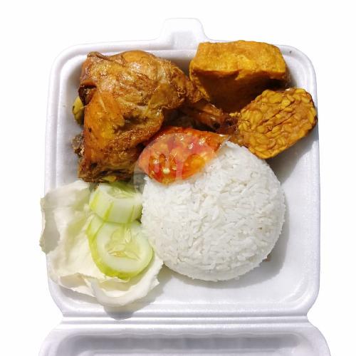 Nasi Putih, Ayam Paha Besar 1/4, Tempe, Tahu, Lalapan, Sambel,pilihan Sambel : Sambel Bawang/ Sambel Tomat