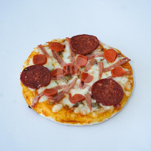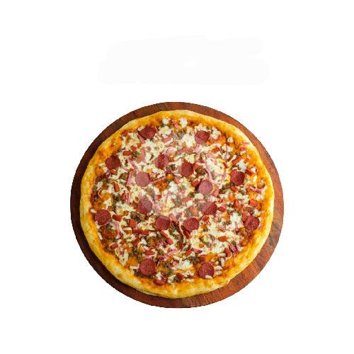 Special red sauce, Ground Beef, Paperoni, brisket, beef sausage dan mozarella