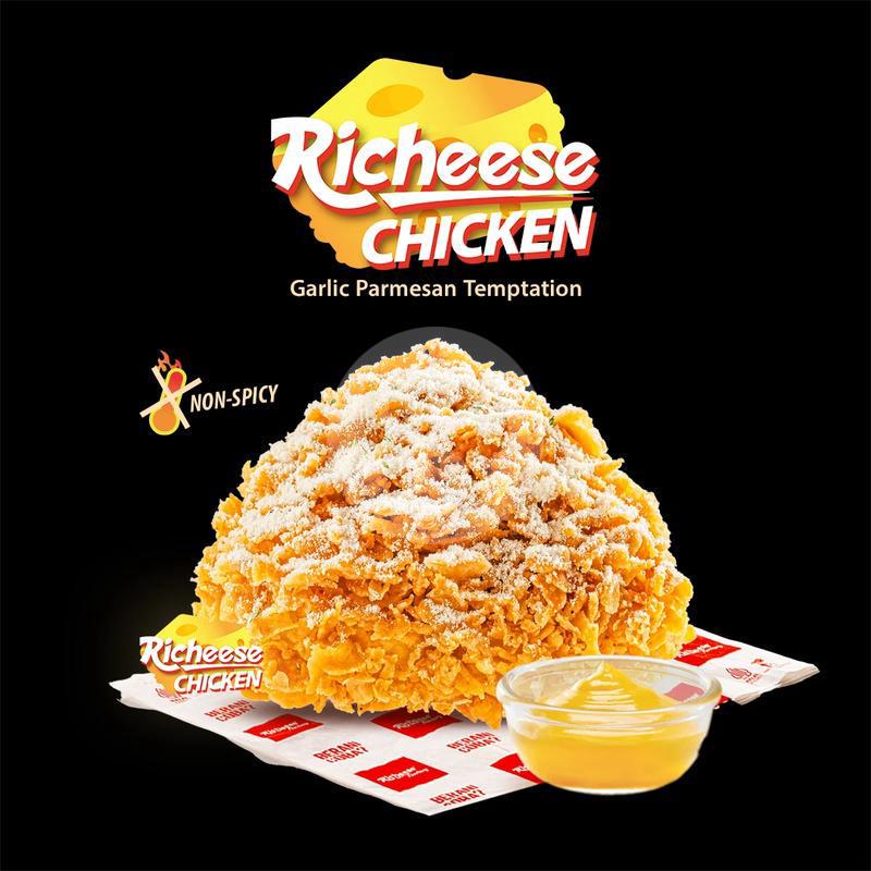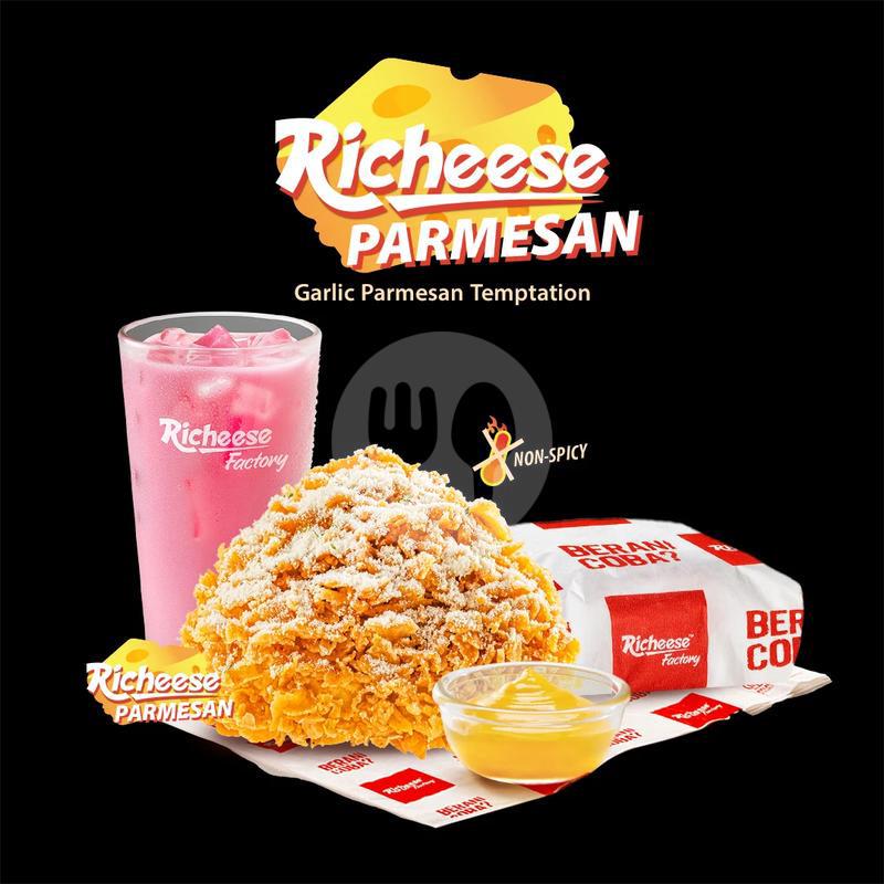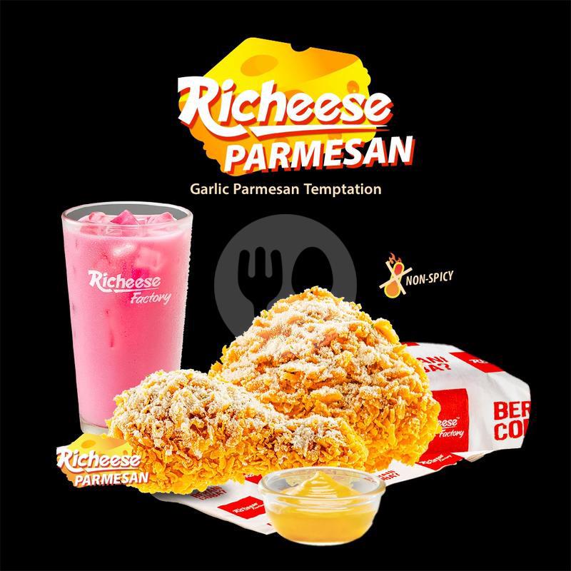 1 Pcs Richeese Parmesan Chicken + 1 Rice + 1 Medium Drink + Cheese Sauce