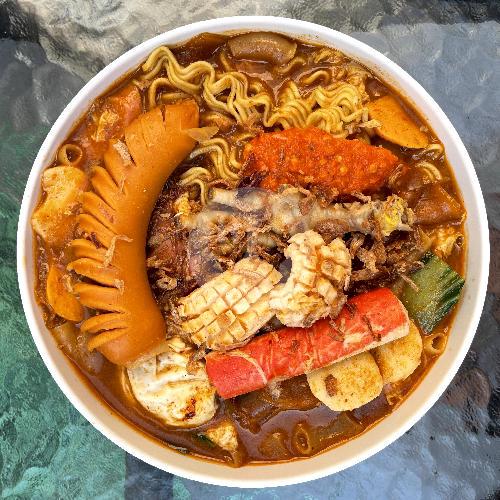 Sawi. daun bawang. krupuk udang. macaroni. ceker/balungan. mie. telur