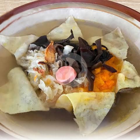 Kuah Sop+wortel+jamur Hitam Jamur Putih+makaroni+daging Giling Balut Telur Dadar