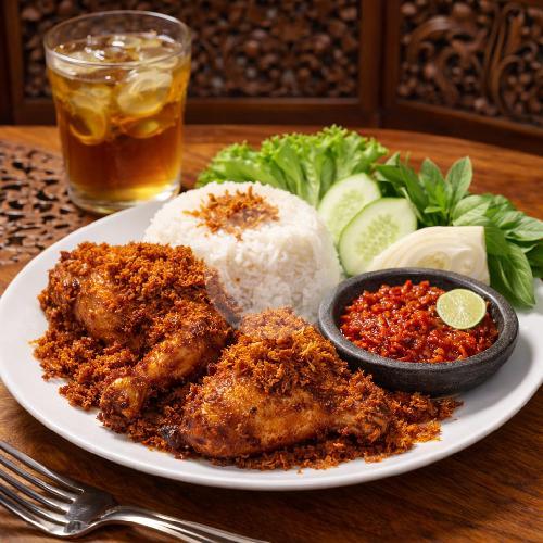 Nasi + Ayam ragi kecil + lalapan + sambal + esteh