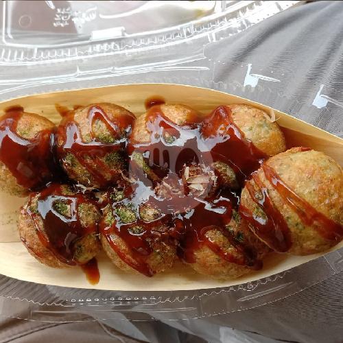 Takoyaki Isi 5 Dengan Isian Udang, Sosis, Keju, Crabstik, Gurita, Sayur, Toping Saos Mayonais, Katsuobushi