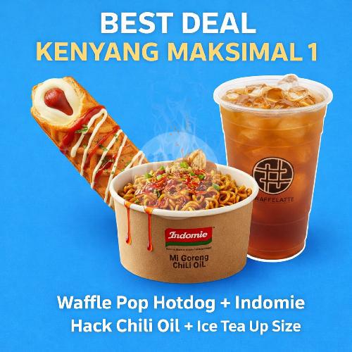 Waffle Pop Hotdog + Indomie Hacks Chili Oil + Ice Tea Upsize