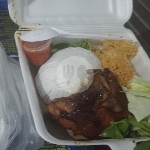 Nasi Ayam Bakar, Kremesan, Sambal , Lalapan