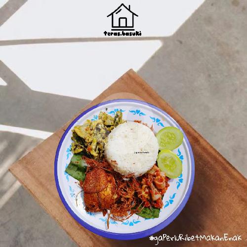 Nasi Hangat, Ayam Goreng Sereh (Random), Sambal Cumi, Daun Skong crispy dan Lalapan