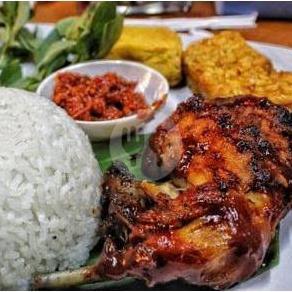 Ayam Yang Dibakar Dengan Bumbu Pedas Manis Dengan Tambahan Sambal Dan Lalapan
