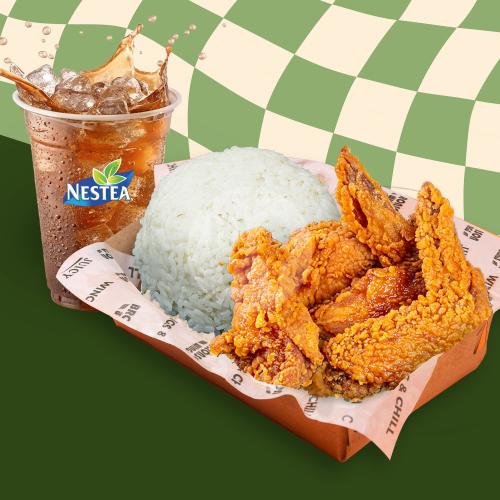 Favorit Baru, Gurih & Pedas, Pilihan Nasi + 4 pcs Chicken Wings + Telur + Crispy Bayam/Kremes + Spicy Cajun