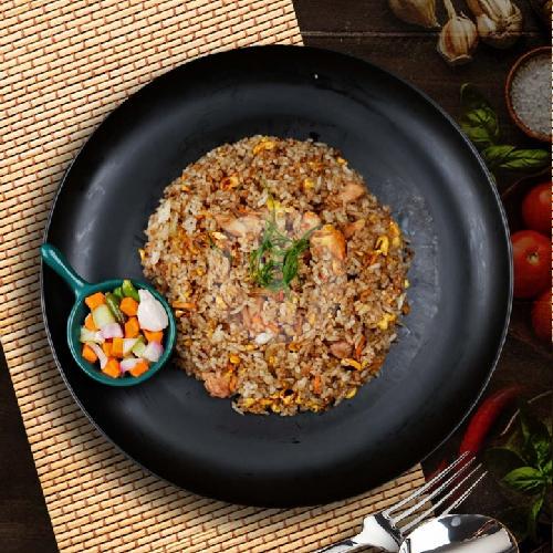 Nasi Goreng Putih Khas Singapura Disajikan Dengan Ayam Dan Bumbu Yang Kaya Rasa