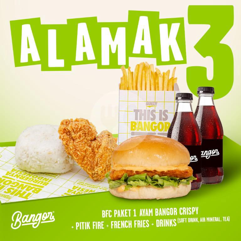 BFC Paket 1 Ayam Bangor Crispy + Pitik Fire + French Fries + Drinks (Soft Drink, Air Mineral, Tea)