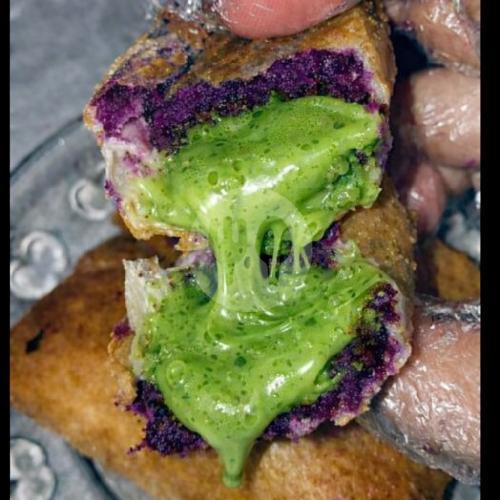 Lumpia ubi isi green tea leleh, gurih dan manis dalam satu gigitan diberi topping susu. 1 Box isi 5.