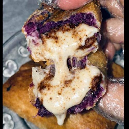 Lumpia ubi isi keju lumer,gurih dan manis dalam satu gigitan diberi topping susu. 1 Box isi 5.
