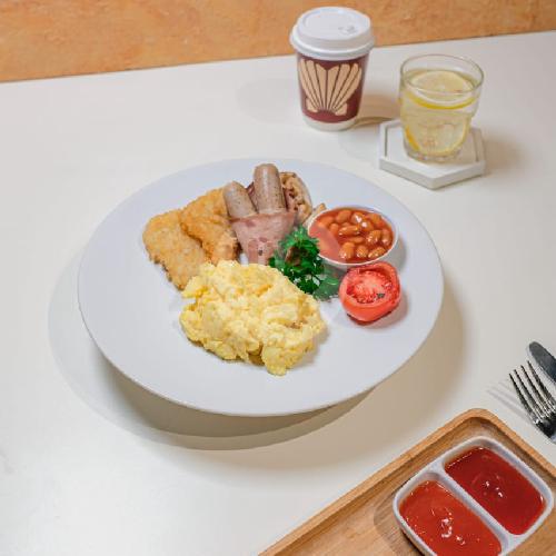 With Chicken Sausages ,Tomato, Hash Brown And Red Bean