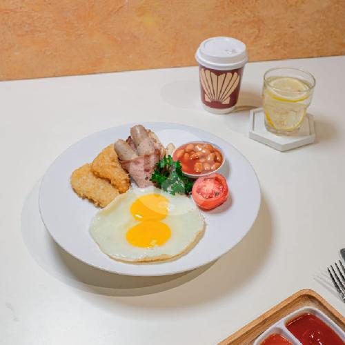 Sunny Side Up, With Chicken Sausages , Tomato, Hash Bworn And Red Bean