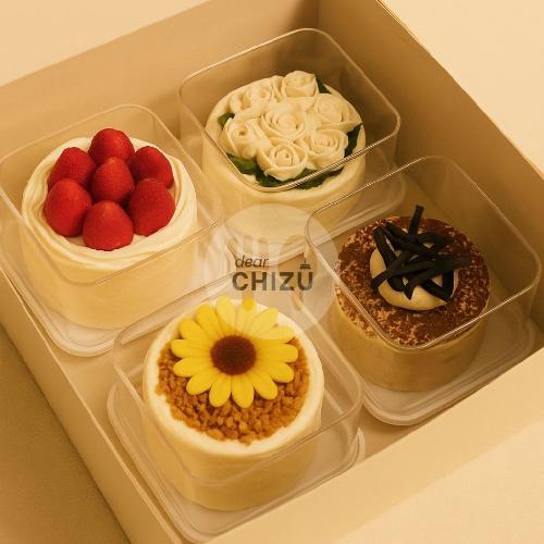 1 box isi 4 mini cake, mohon memilih 4 varian yang sudah disediakan. Mohon tulis di notes utk kartu ucapan. Pilihan variasi bisa dicheck di katalog,halal