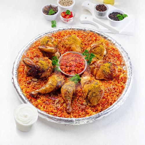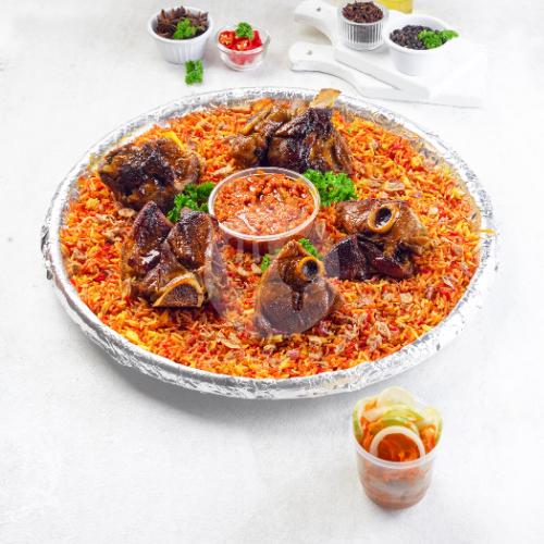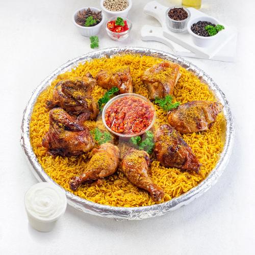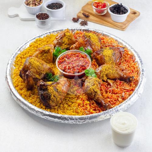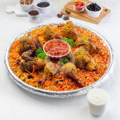 5 porsi nasi Mandhi + 5 porsi nasi Biryani + ayam 8 pcs + sambal large + Garlic mayo large + Bawang goreng