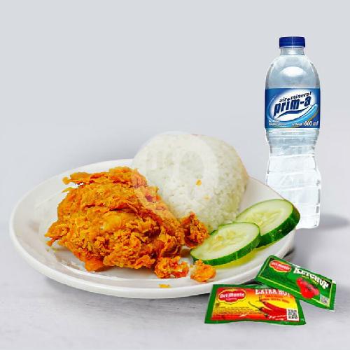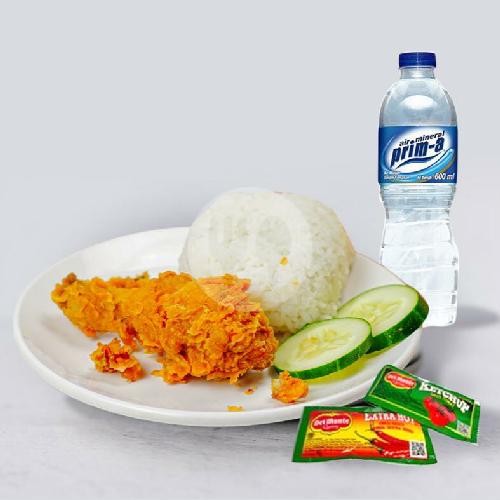 Ayam Paha Bawah/Sayap, Nasi, Saos Sachet, Air Mineral