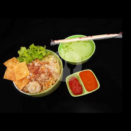 Pangsit Mie Dengan Selada segar,siomay Ayam, Dan Taburan ayam Yang sedap. Disajikan Dnegan Porsi Yabg Cocok Untuk Sarapan Dan Makan Siang Maupun Malam