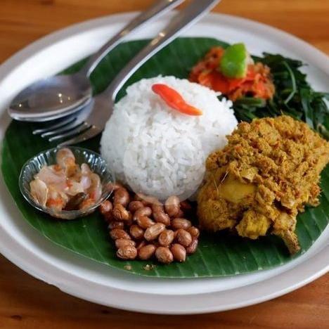 Nasi + 1 Potong Ayam + Sayur Kangkung + Sambal Plencing + Sambal Matah + Kacang Goreng