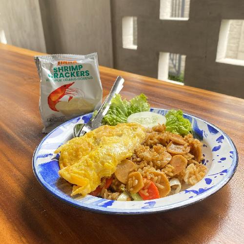 Nasi Dengan Sosis Pentol Telur Dan Kerupuk
