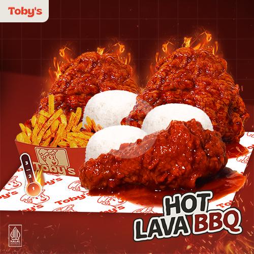 2 Dada/Paha Atas + 1 Sayap/Paha Bawah + 3 Nasi Putih + 1 French Fries+ 3 Saus Hot Lava