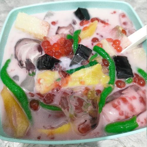 isian banyak bermacam macam ada roti,tape,cao,muntiara,nutrijel,dawet,garbis,nanas,susu,gula sirup,mantaapppp