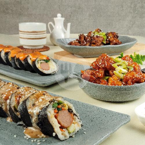 KIMBAB KANI DENGAN TAMBAHAN AYAM CRISPY DENGAN SAUS KHAS KOREA