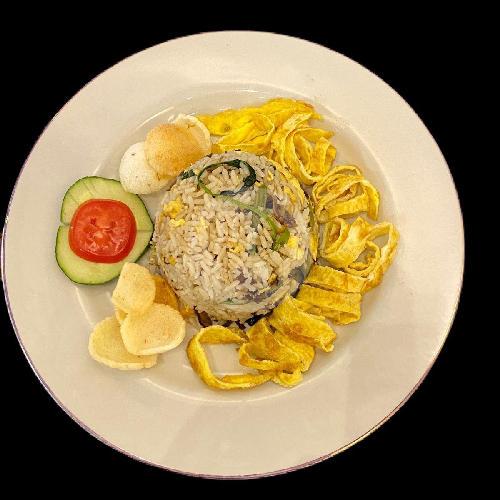 Nasi Yang Di Padukan Dengan Sayuran Kangkung Dan Suir Jamur Dan Orak Arik Telur