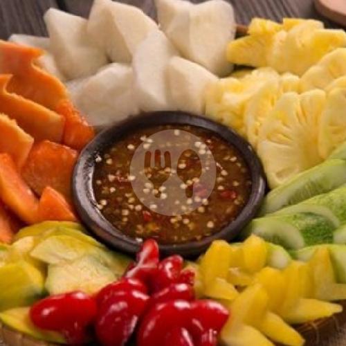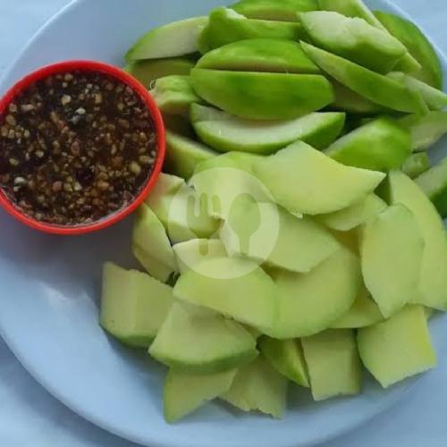 Potongan Buah Mangga ,jambu air,bengkuang,mentimun,pepaya,nanas,ubi,belimbing Di Cocol Dengan Bumbu Petis Pedas Manis Segar,tersedia Level Pedas 1-10,