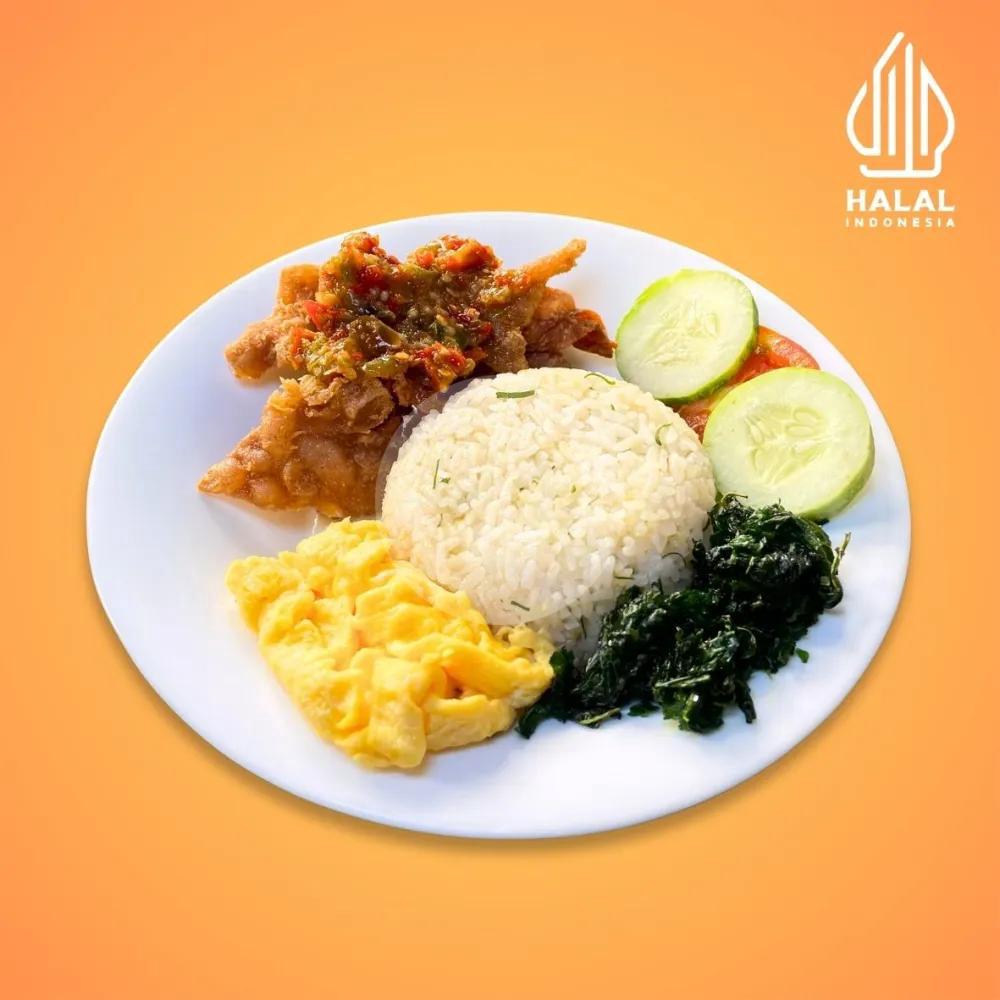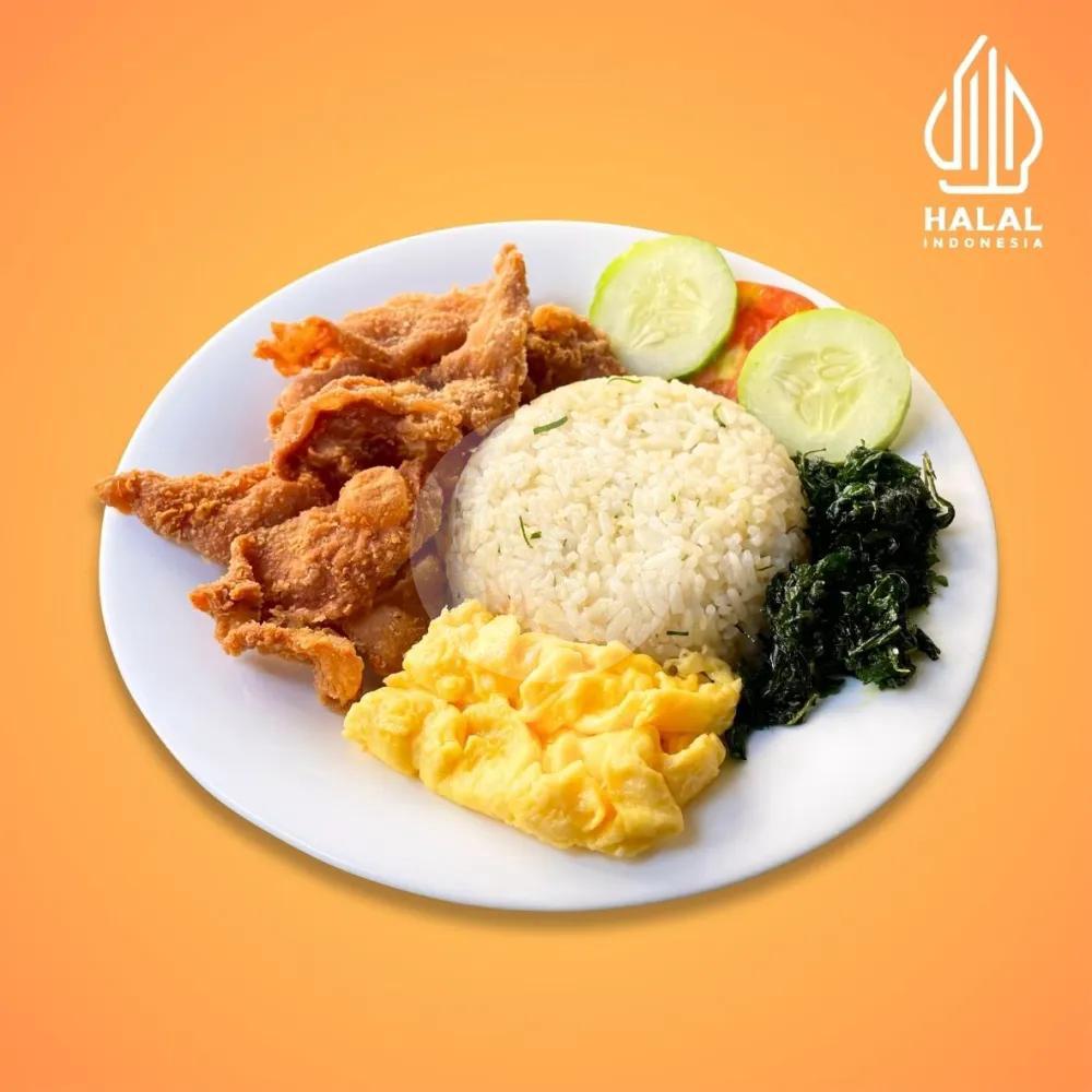 Nasi + Kulit Crispy + Telor Pilihan + Sayuran