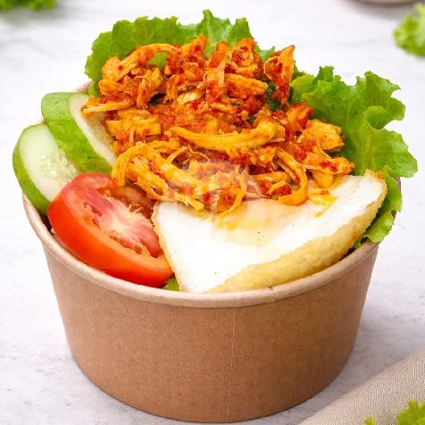 Nasi, Ayam Suwir Kemangi, Telur, timun, selada, tomat, (Jumbo 800ml)