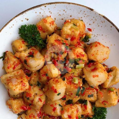 Tahu crispy dengan bumbu pedas gurih cabe garam cocok untuk peneman ngemil.