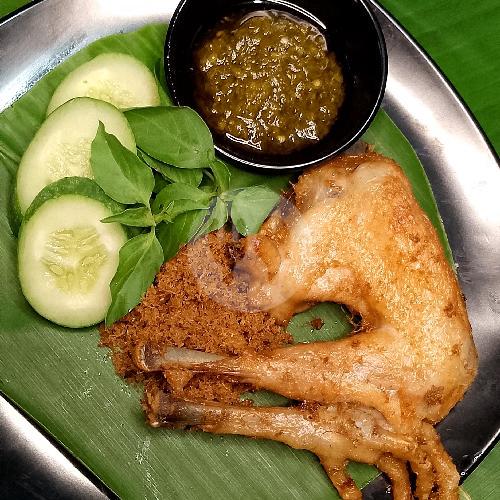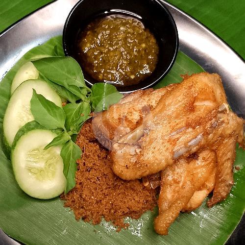 Ayam Dada dengan serundeng dan sambal ijo yang khas keluarga , selamat menikmati .