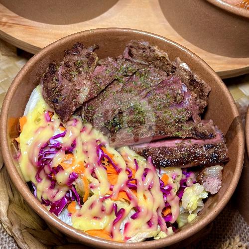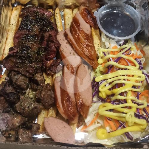 -+100gr Aus Rib Eye. Steak,-+100gr Saikoro,-+100gr Bratwurst,kentang,salad Saus