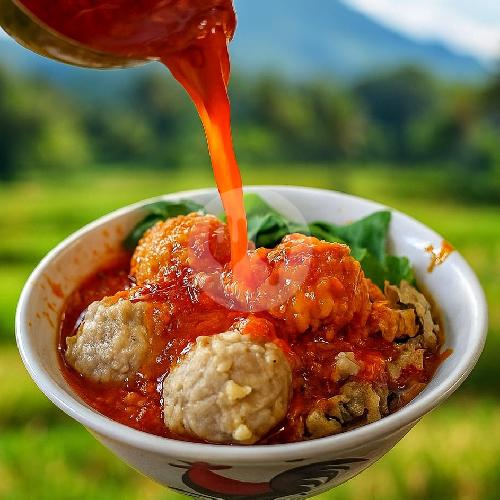 (Bakso Urat Biasa)bakso dengan kuah pedas wajib banget coba bakso samber gelap ini,.kuah pedas dan sedikit sentuhan bumbu yg di masak dengan Cinta Rasa yang tak pernah tertinggal yang bikin sedap....
