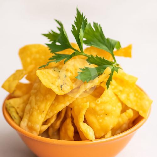Takaran bahan yang sudah teruji ini, menghasilkan pangsit goreng yang renyah di luar dan lembut di dalam. Bikin kurang kalau hanya makan satu saja.