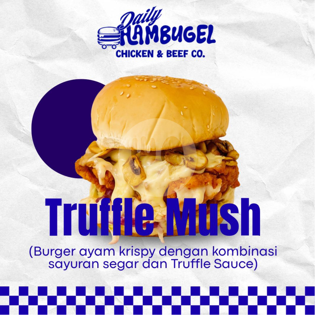 Burger ayam krispi dengan rasa nashville dan disiram mushroom sauce