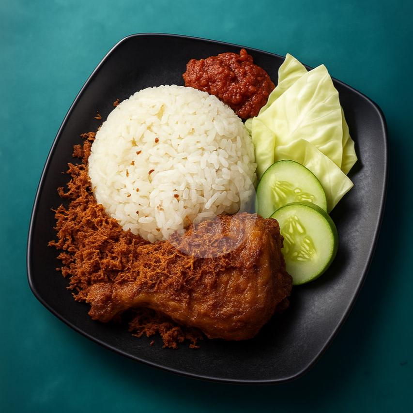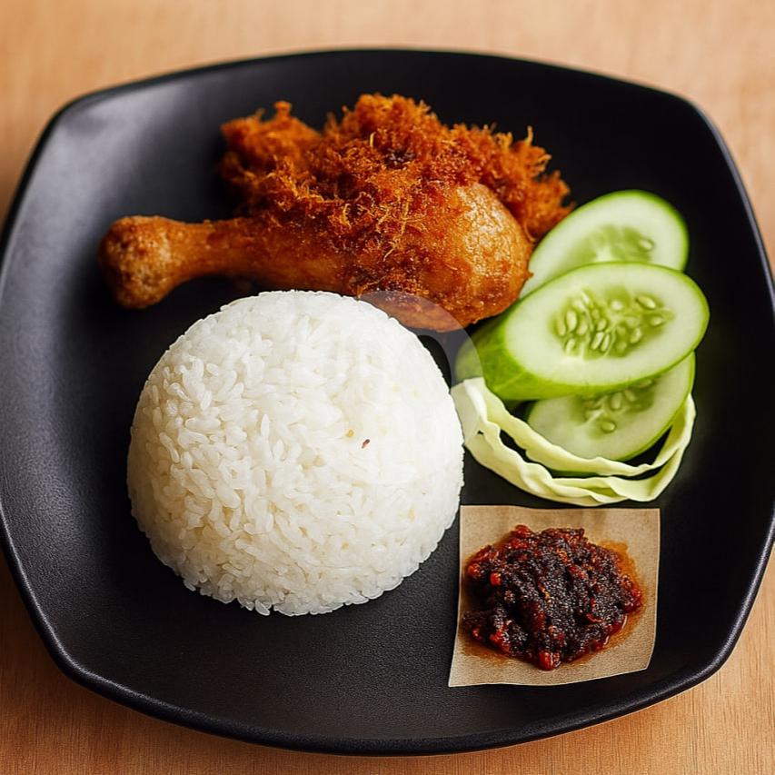 Nasi + Ayam Rempah Goreng (paha bawah) + Sambal + Lalapan