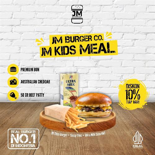 Burger dengan Beef Patty, Keju Melt Cheddar Australia, Onion, dan Saus Spesial + Ultra Milk 200ml + Kentang Goreng