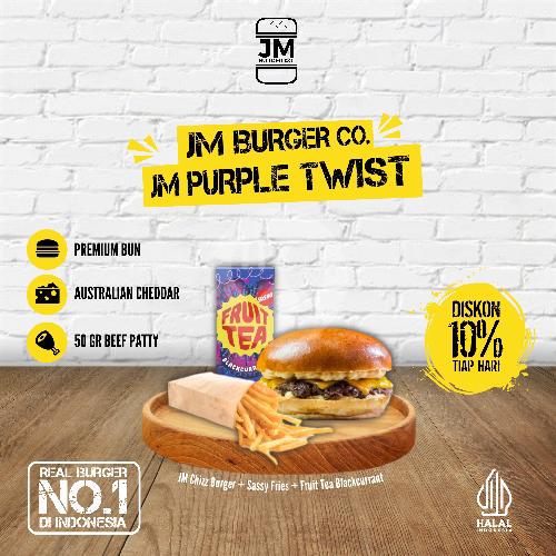 Burger dengan Beef Patty, Keju Melt Cheddar Australia, Onion, dan Saus Spesial + Fruit Tea BC 250ml + Kentang Goreng