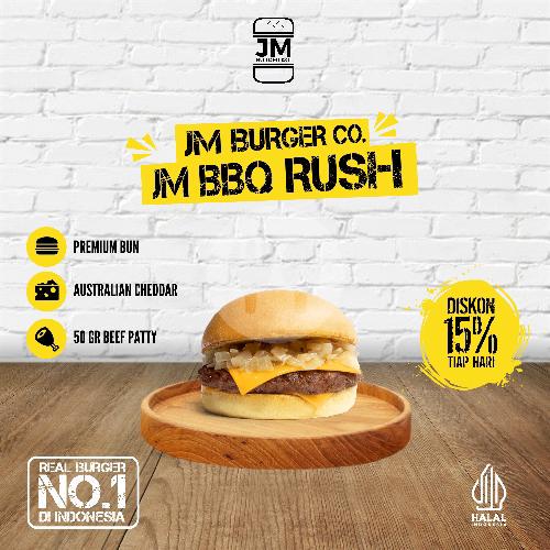 Burgerdengan Beef Patty, Keju Melt Cheddar Australia, Onion, dan Saus Spesial BBQ