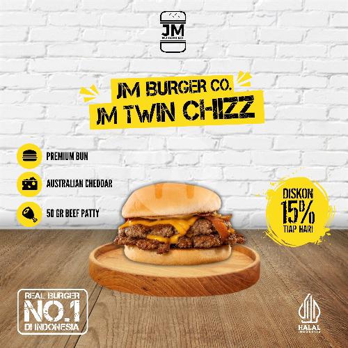 Burger dengan Double Beef Patty, Double Keju Melt Cheddar Australia, Onion, dan Saus Spesial
