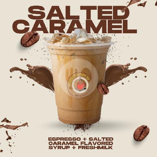 Robusta + Fresh milk + Creamer/evaporasi + Salted Caramel Syrup + Ice