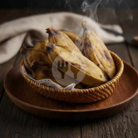 1 buah pisang, dan menggunakan jenis pisang kepok kuning pilihan yang berasal dari kebun alami di jogja, dengan cita rasa manis alami. Setiap penyajian di lengkapi dengan sambal pedas alami dan juga gula aren cair untuk pelengkap.